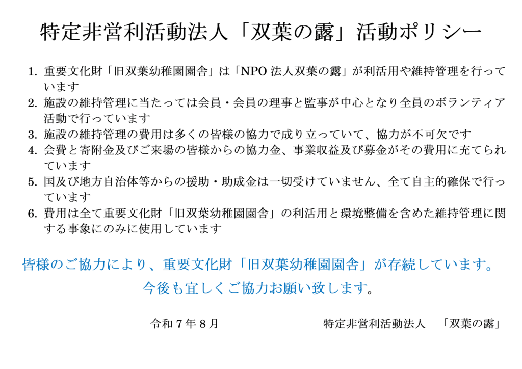 NPO法人「双葉の露(ふたばのつゆ)」ご入会案内について